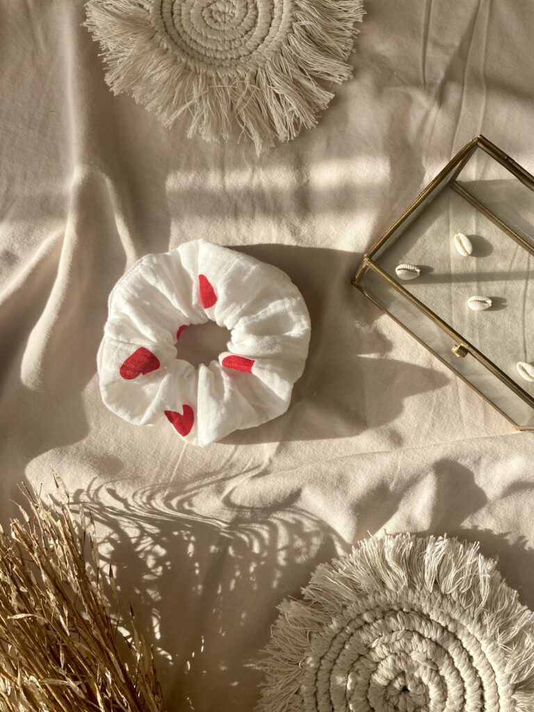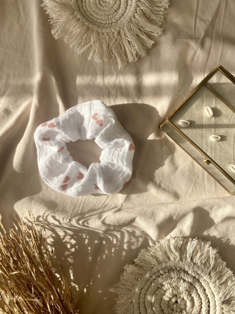– Scrunchie „Lovely“ mit zarten Herzchen aus Musselin Stoff gefertigt –