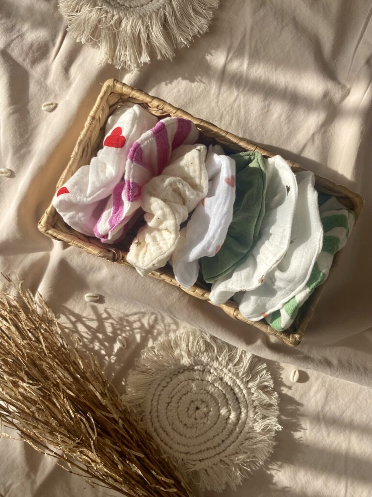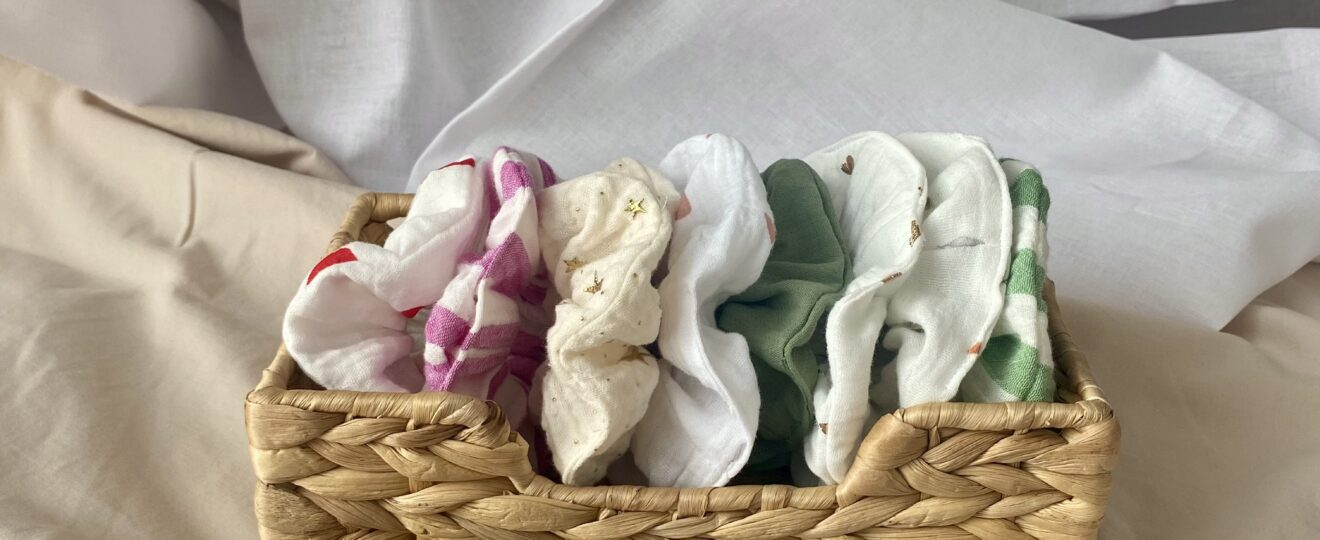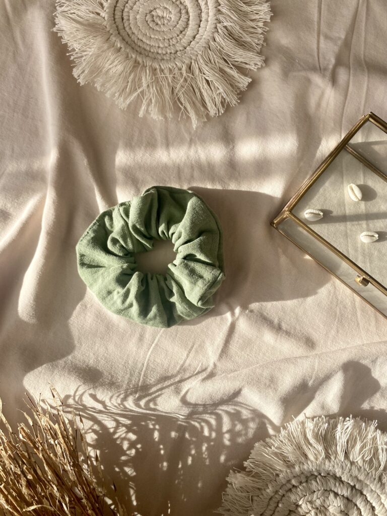 – Scrunchie „Nature“ in mintgrün aus Bio Musselin Stoff gefertigt –
