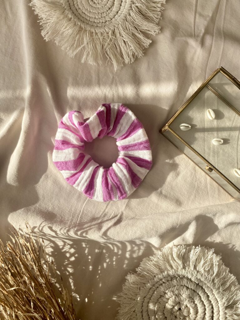 – Srunchie „Funky“ in pink/ weiß gestreift aus Musselin Stoff gefertigt –